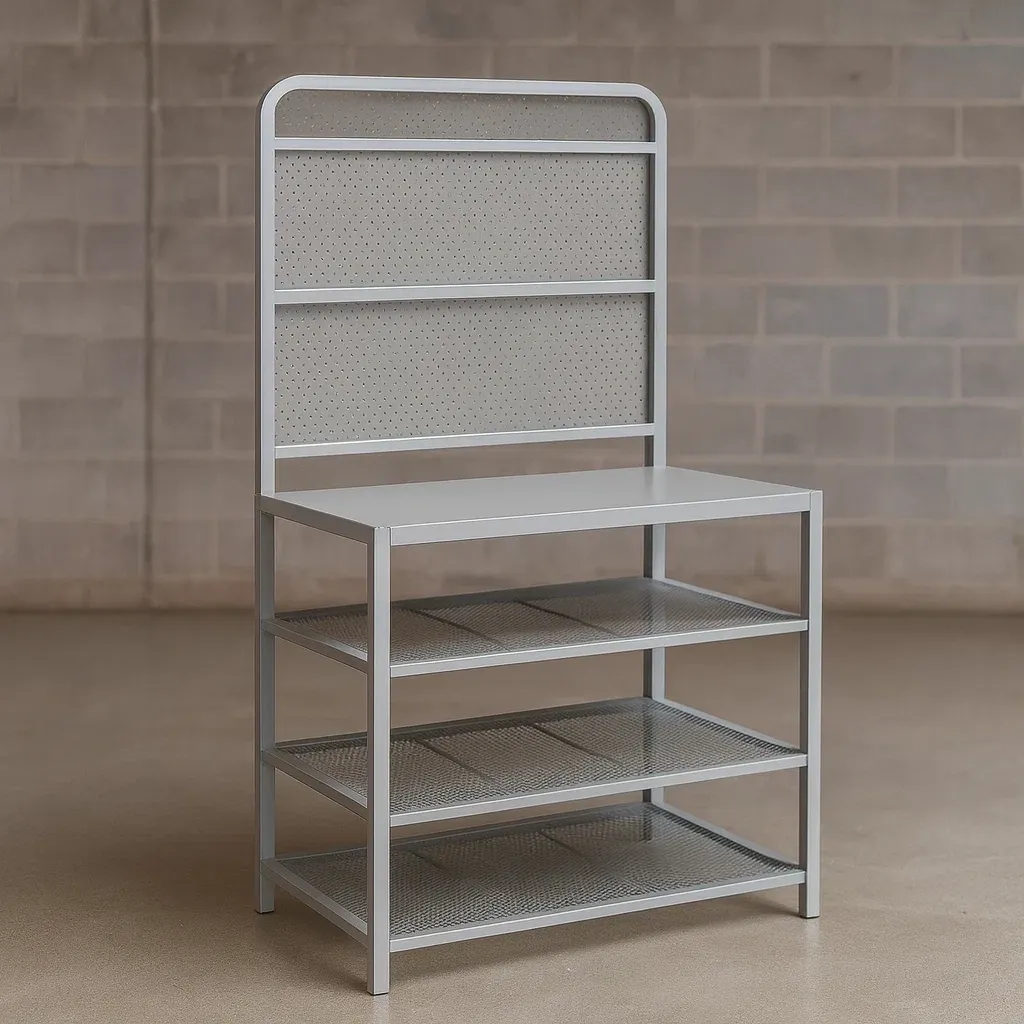 Structure: Cadre métallique avec étagères et panneau arrière perforé